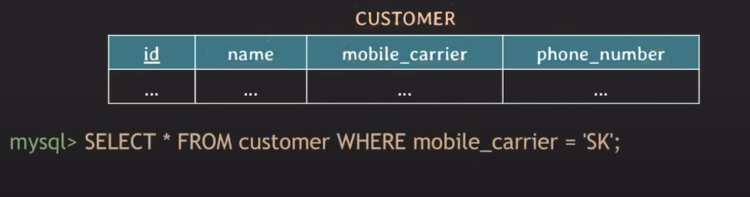 full scan(=table scan)으로 찾아야 한다 이는 O(N)이 걸린다.