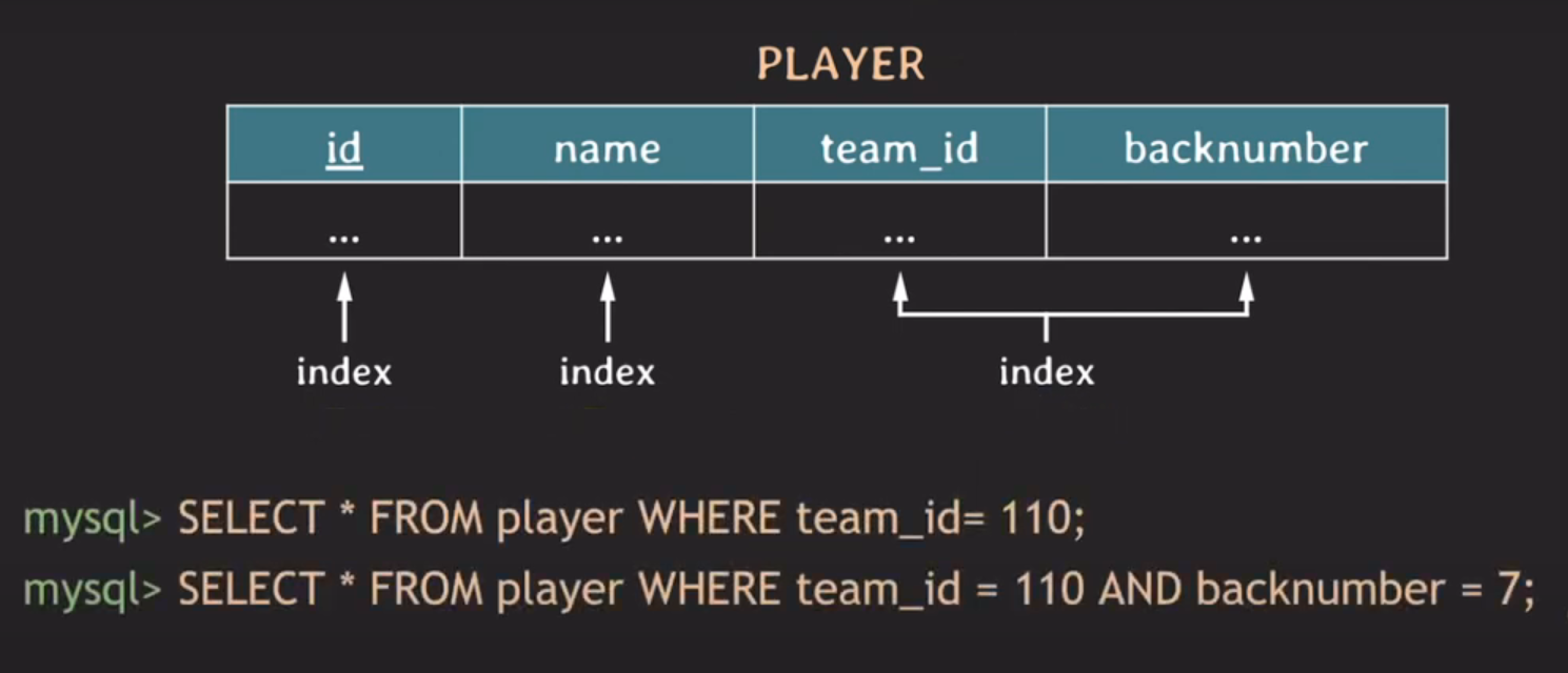 team_id에 해당하는 튜플은 빠르게 찾을 수 있지만 추가적으로 backnumber = 7인 튜플도 찾아야 하기 때문에