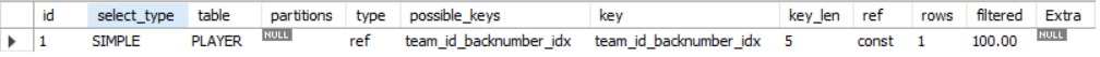 team_id, backnumber 2개의 컬럼을 가지는 composite index를 사용한다.
