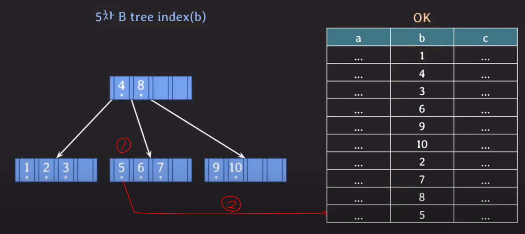 즉, 5차 B tree가 데이터를 찾을 때 탐색 범위를 빠르게 좁힐 수 있다.
