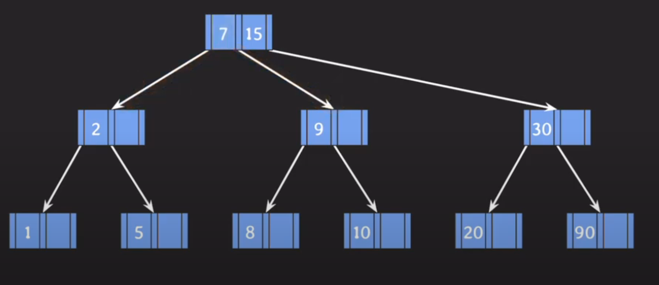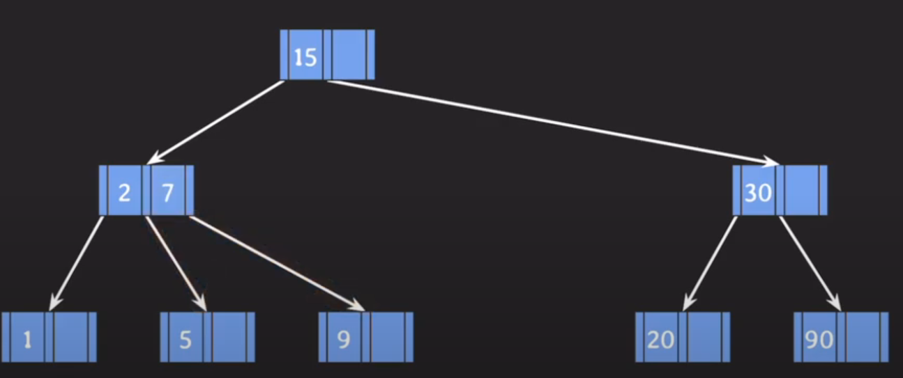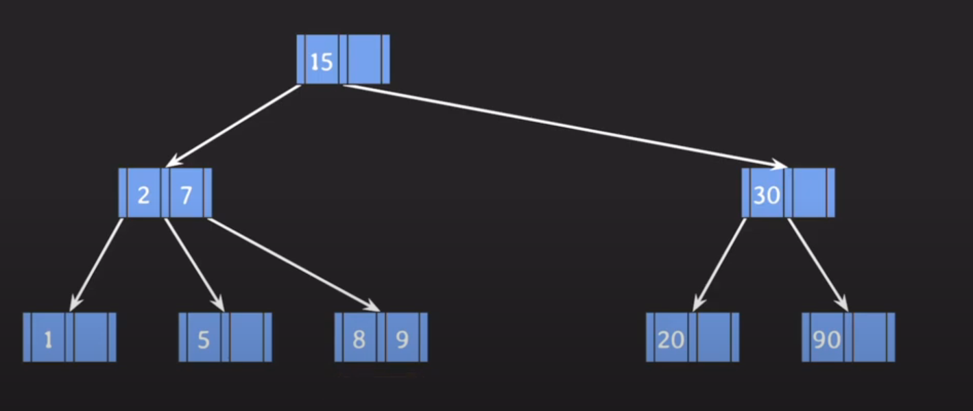 반면 5차 B tree는 각 노드의 데이터 수는 최소2개에서 최대 4개이다.