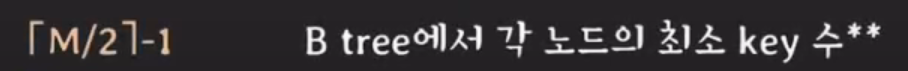 노드가 최소 하나의 key는 가지기 때문에 몇 차 B tree 인지와 상관없이 internal 노드는 최소 두 개의 자녀는 가진다