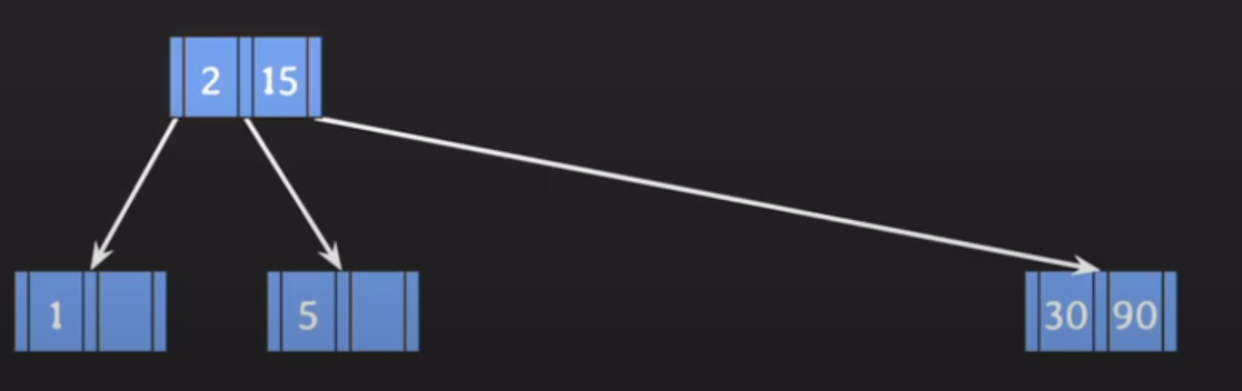 그럼 2,15 보다 크니까 오른쪽 노드인 [30, 90] 노드로 이동한다.