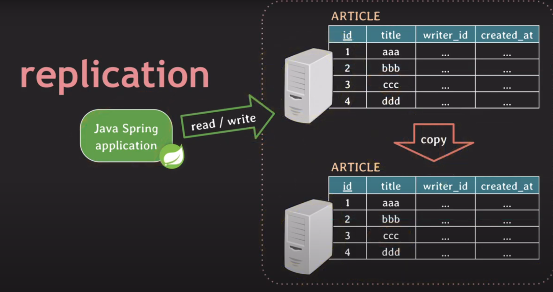 DB를 복제해서 여러 대의 DB 서버에 저장하는 방식