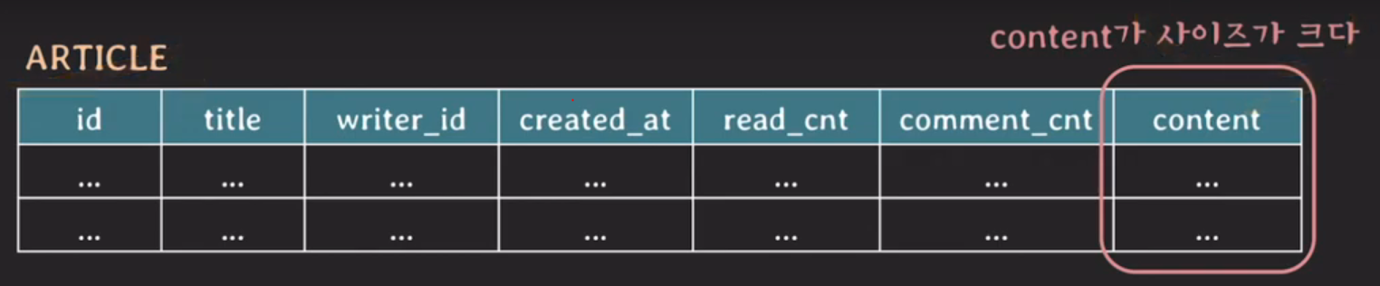 이제 게시글 목록에서는 ARTICLE 테이블을 Secondary Storage에서 가져올 때 용량이 큰 content를 가져오지 않는다.