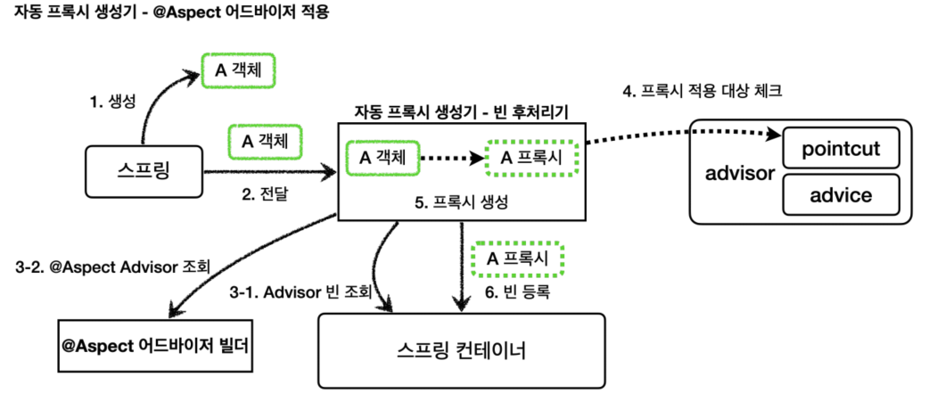 자동 프록시 생성기는 추가로 하나의 역할을 더 하는데, @Aspect를 찾아서 이것을 Advisor로 만들어준다.