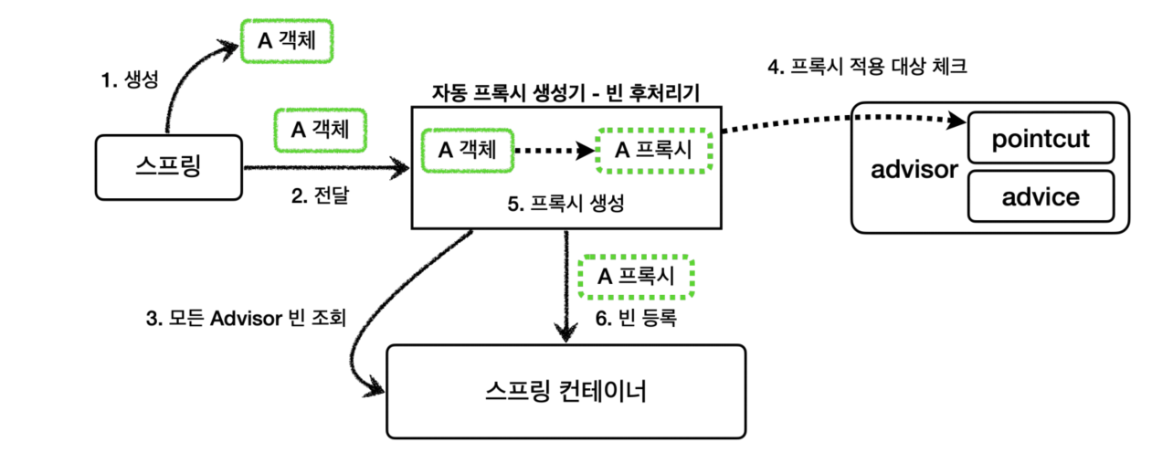 스프링은 프록시를 생성하기 위한 빈 후처리기를 이미 만들어서 제공한다